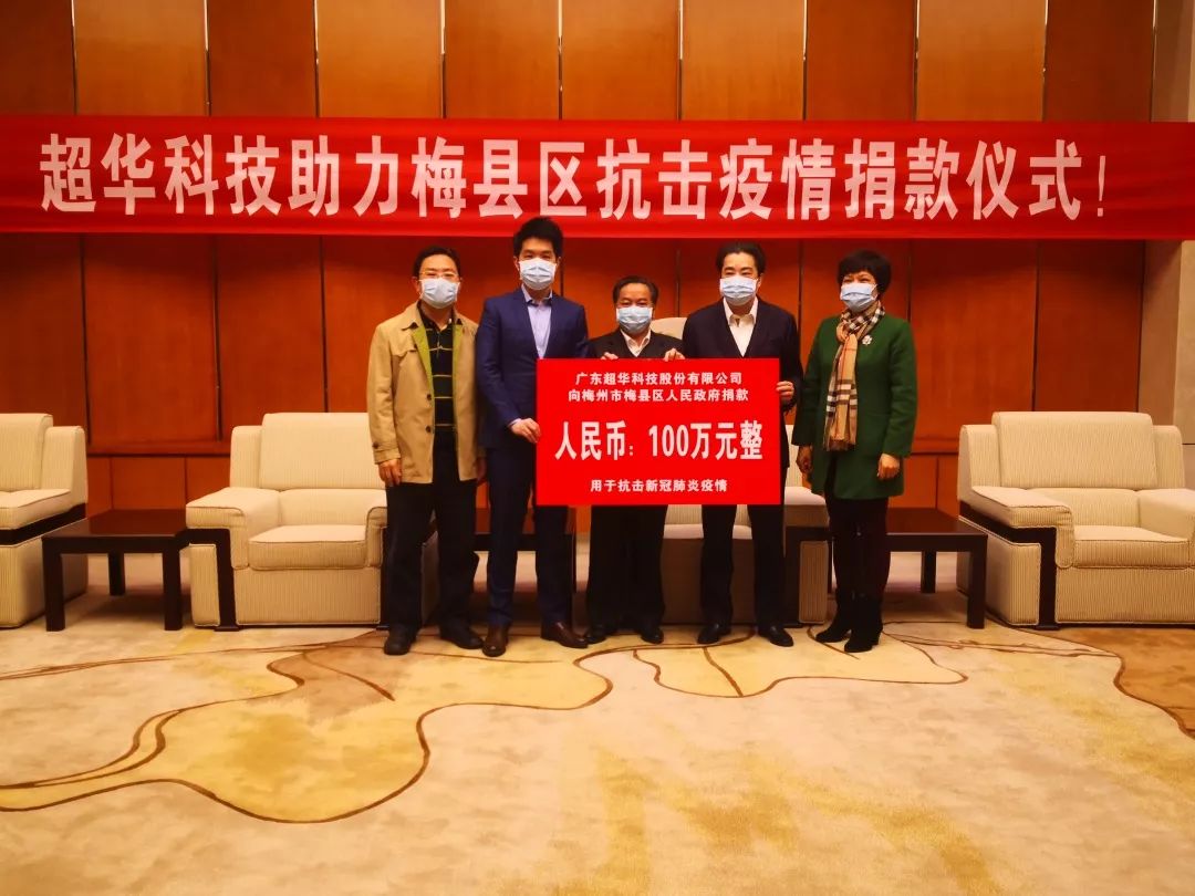 當前,新型冠狀病毒感染肺炎疫情防控斗爭已進入攻堅期,為助力打贏疫情防控戰(zhàn),超華科技除在深圳市梅縣商會捐資20萬元購買疫情防控物資外,追加捐資100萬元助力梅縣區(qū)抗擊疫情, “疫”不容辭履行社會責任。