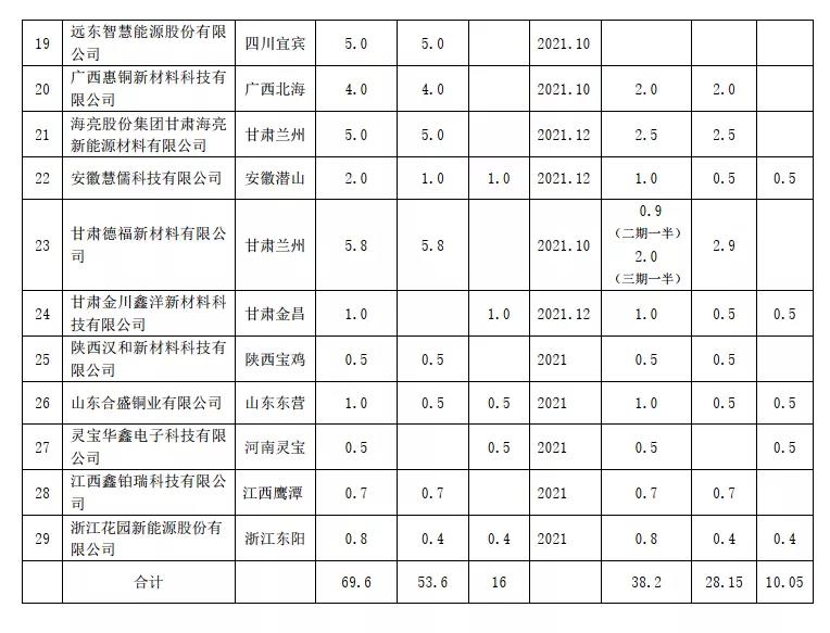 3、 2021年國內(nèi)新增電解銅箔產(chǎn)能的統(tǒng)計